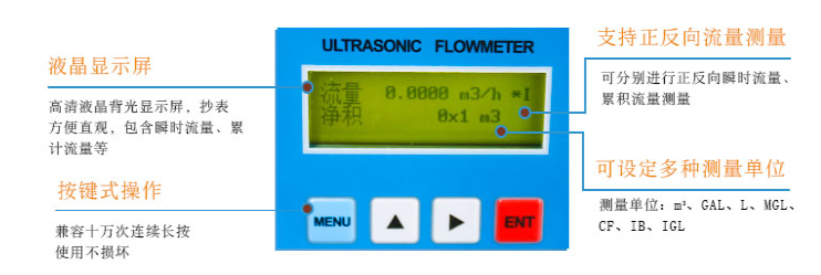 (4)正、反双向计量,可计量正、负、净累积流量,流速等。